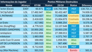 Em 24-10-2025 --:--:--, as seguintes frotas se encontraram em batalha: